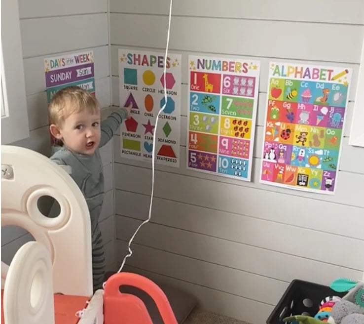 I absolutely love these educational posters! I put them up on the wall when my grandson was 11 months old, and now that he’s 12 months, he already enjoys looking at them every day. The bright colors and simple designs catch his attention, and they make it so easy for me to introduce basic concepts like the alphabet, shapes, colors, numbers, and even the solar system.