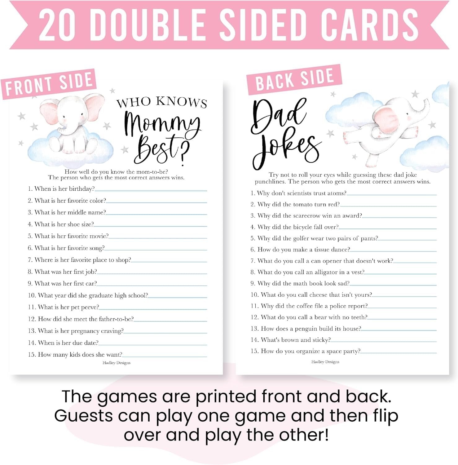 Who Knows Mommy Best & Dad Jokes Games | Set of 20 | Baby Shower Games