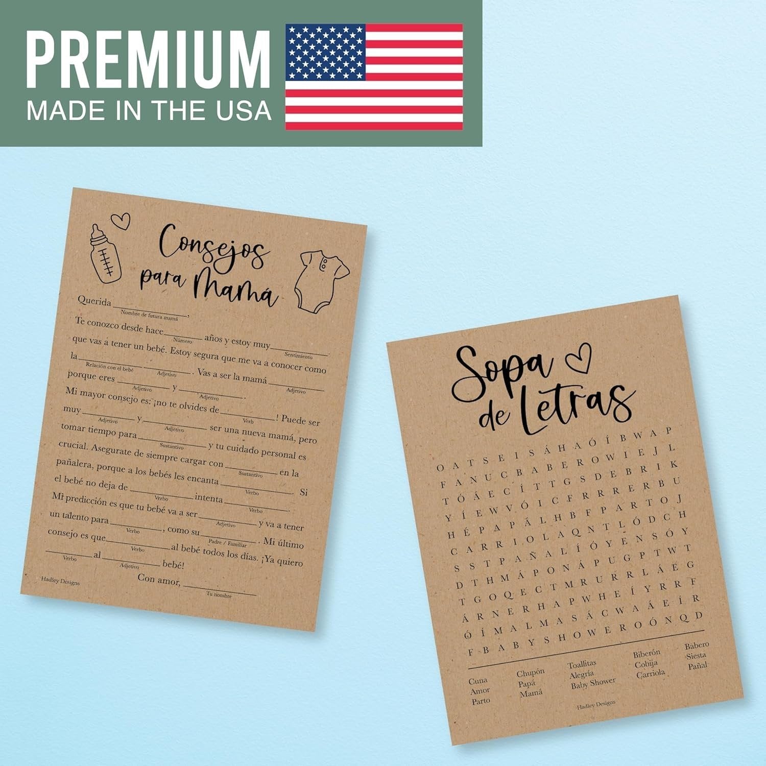 - If You’re Looking To Make Your Baby Shower Unforgettable; Then you need these Spanish baby shower games because while other baby shower games in Spanish are made overseas, our Spanish baby girl and baby boy shower games are USA made