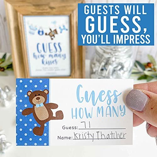 - If You Want a Fun and Memorable Party Game, these baby shower guessing game jar cards are for you; while other baby shower candy guessing game cards are made overseas on flimsy paper, our guess how many kisses in the jar cards are made in the USA on premium cardstock with matte finish