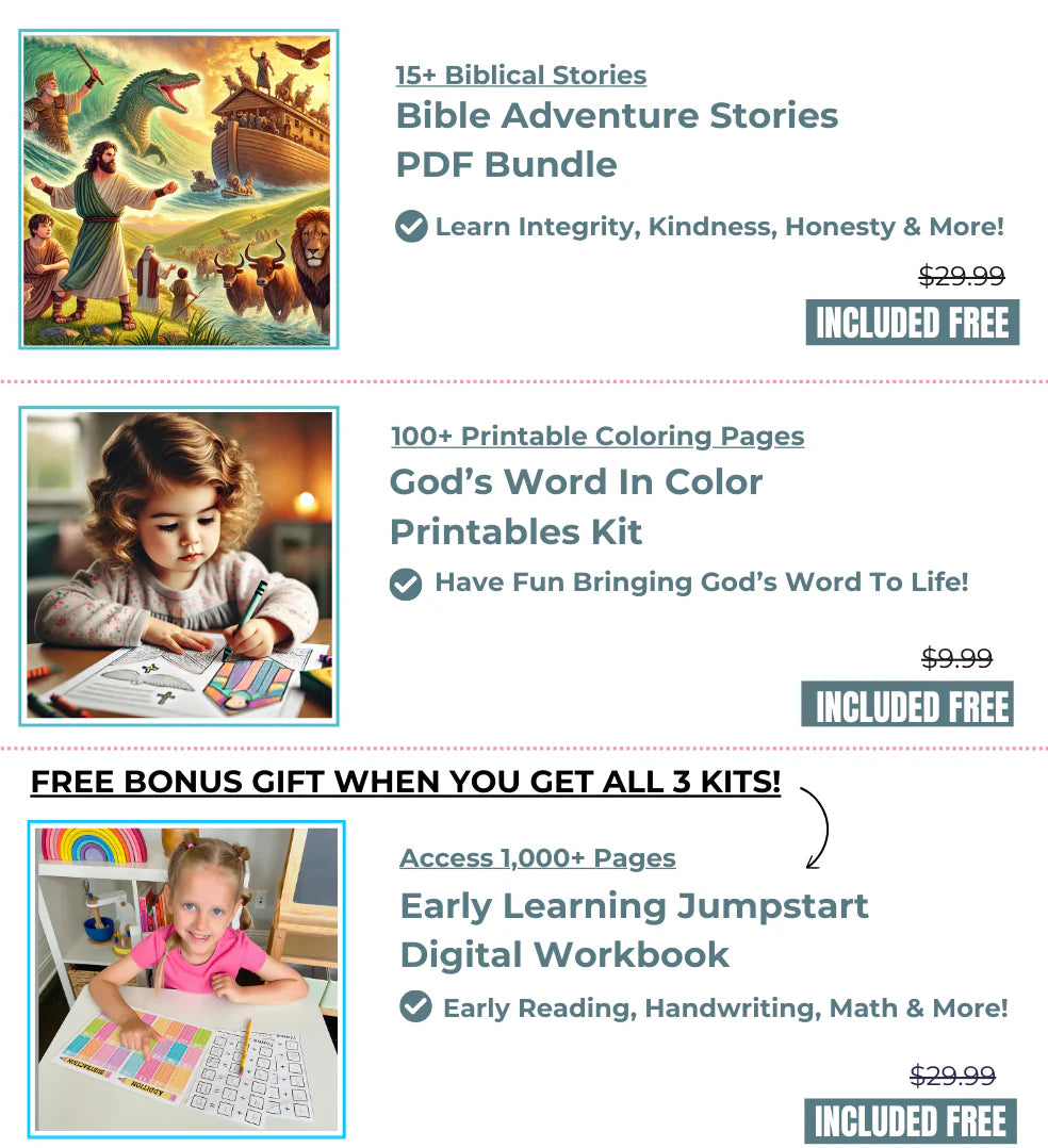 Faith-filled learning has never been easier ! The Little Disciples Head Start Kit helps guide children from the basics of Scripture to a strong foundation in God’s Word—building faith, confidence, and a love for learning!