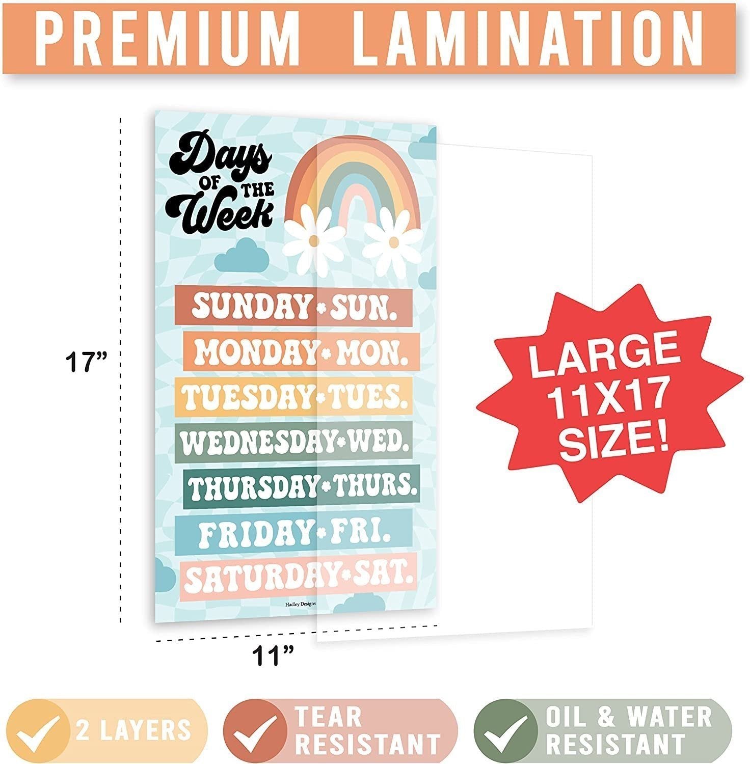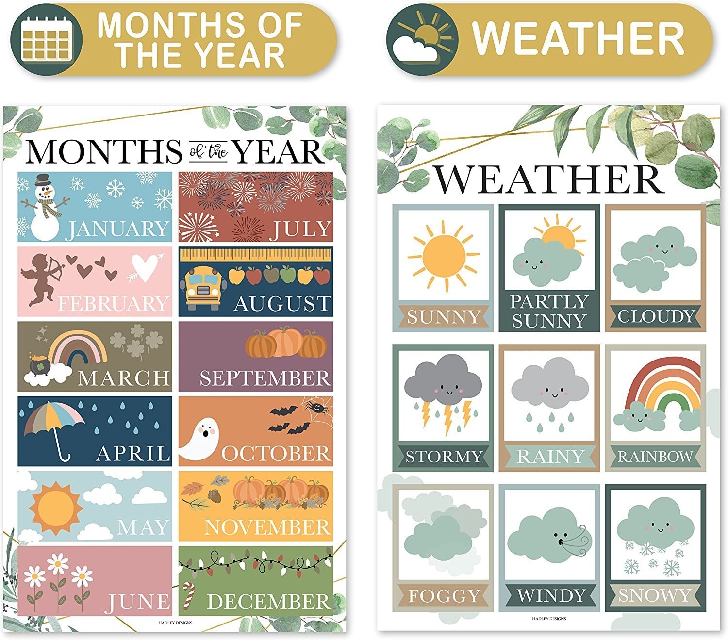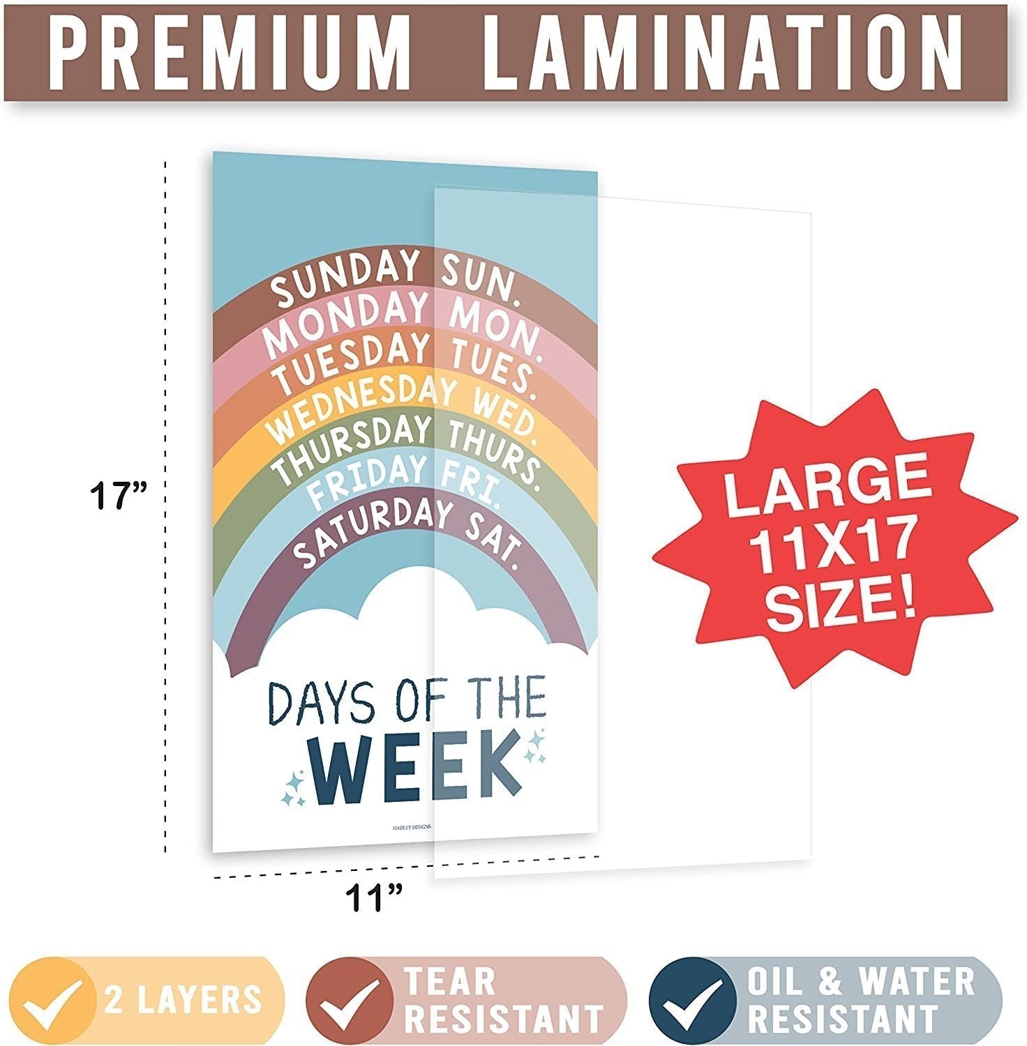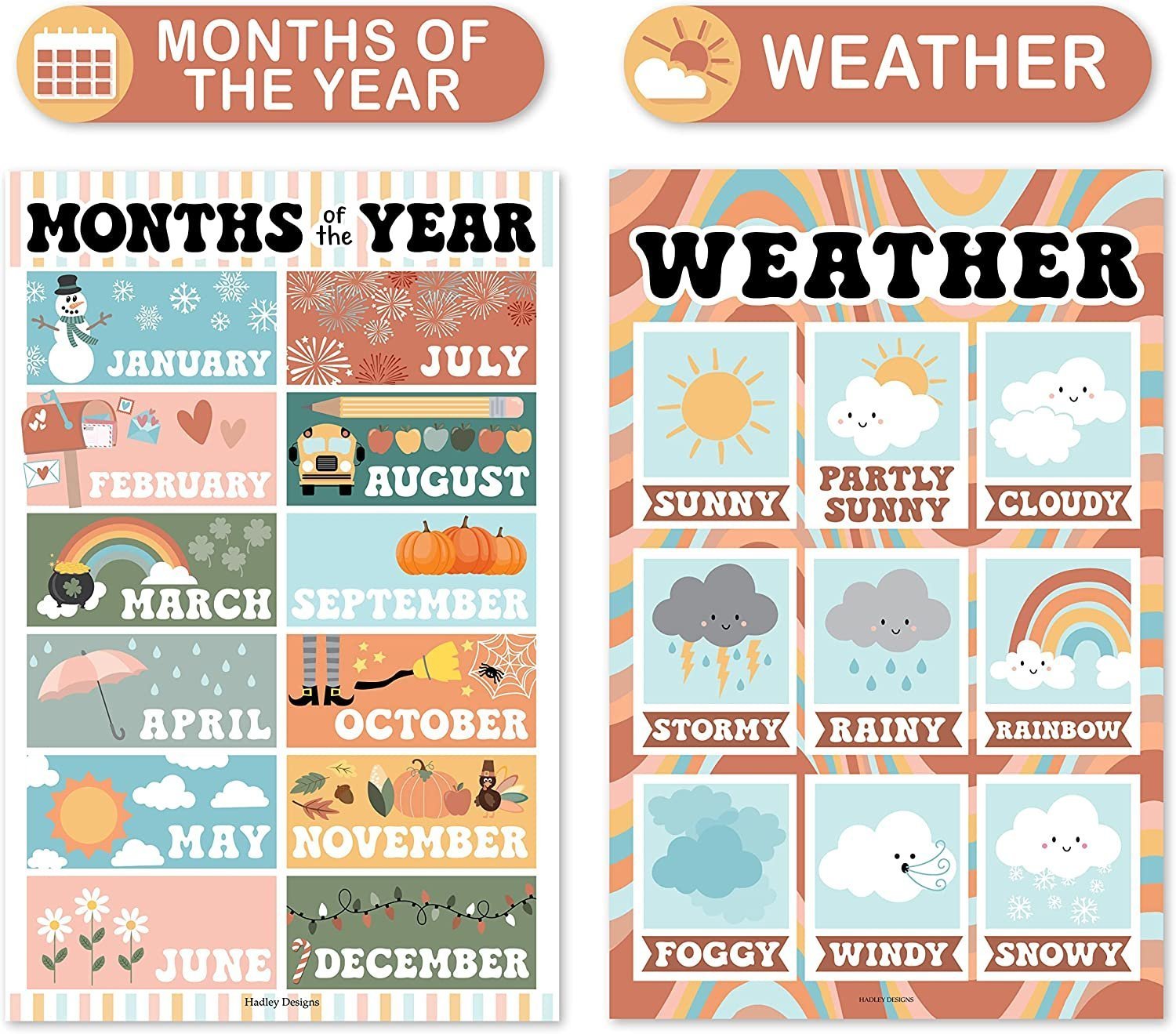 - Make Learning Fun; You'll receive 4 different 11x17" laminated posters, 1 - Alphabet Chart, 1 - Months Of The Year Poster, 1 - Weather Chart For Classroom, and 1 - Days Of Week Chart; Use these as preschool learning posters/preschool educational posters for kindergarten