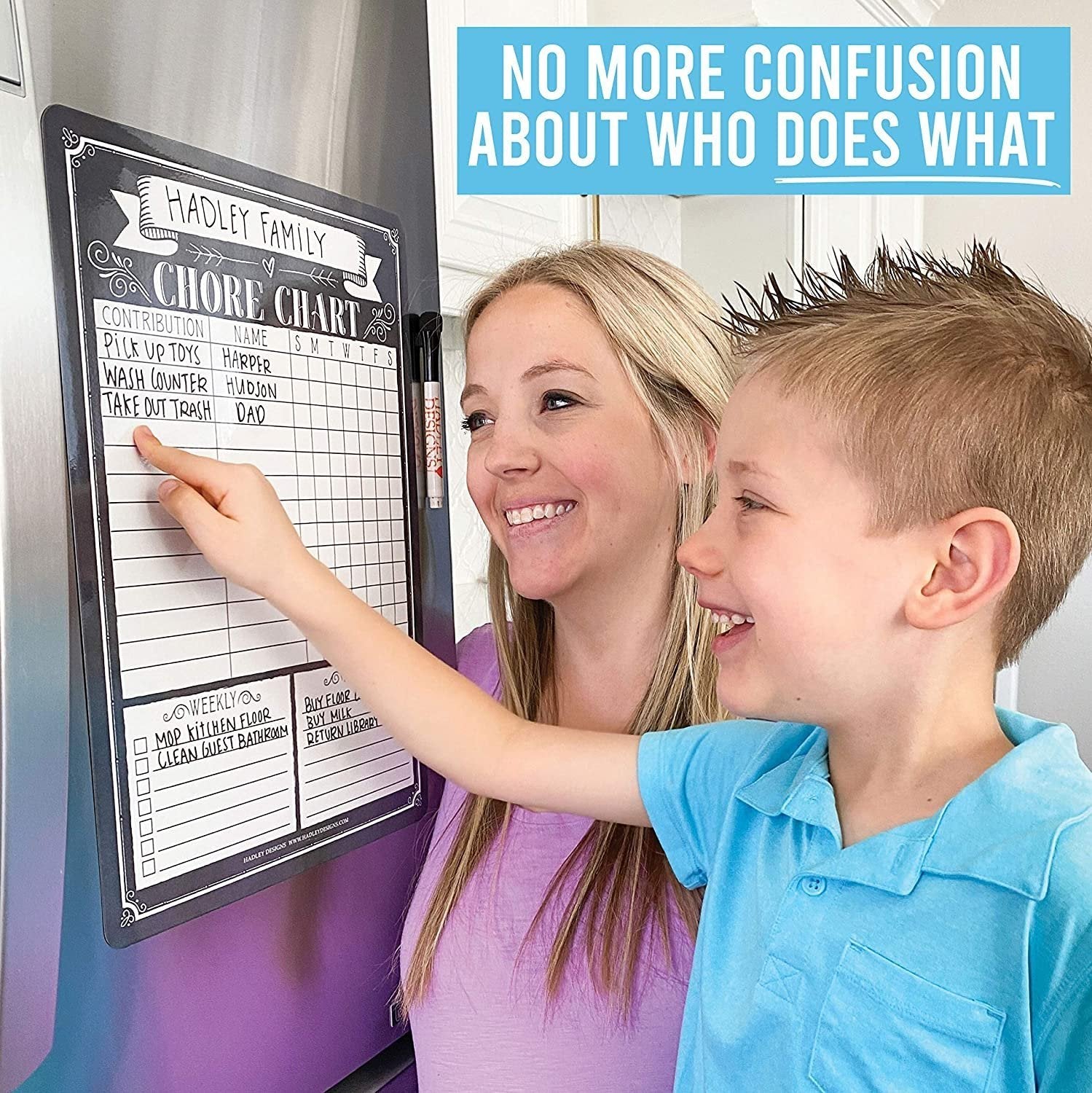 - If You Want Your Whole Family To Become More Responsible, this rustic chalk themed magnetic chore board for family is for you; While other chore magnets for kids are made overseas with flimsy magnets, our family and kids chore chart is made in the USA on a premium magnet so edges won't curl up