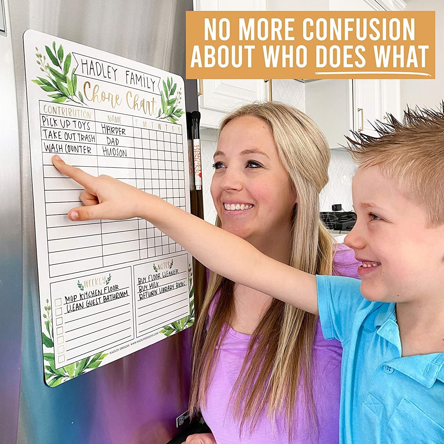 - Easily Encourage Accountability; This dry erase chore chart for multiple kids is a weekly chore chart for adults, teenagers, and students; Bring organization to routine with the chalkboard design household chores chart for multiple kids