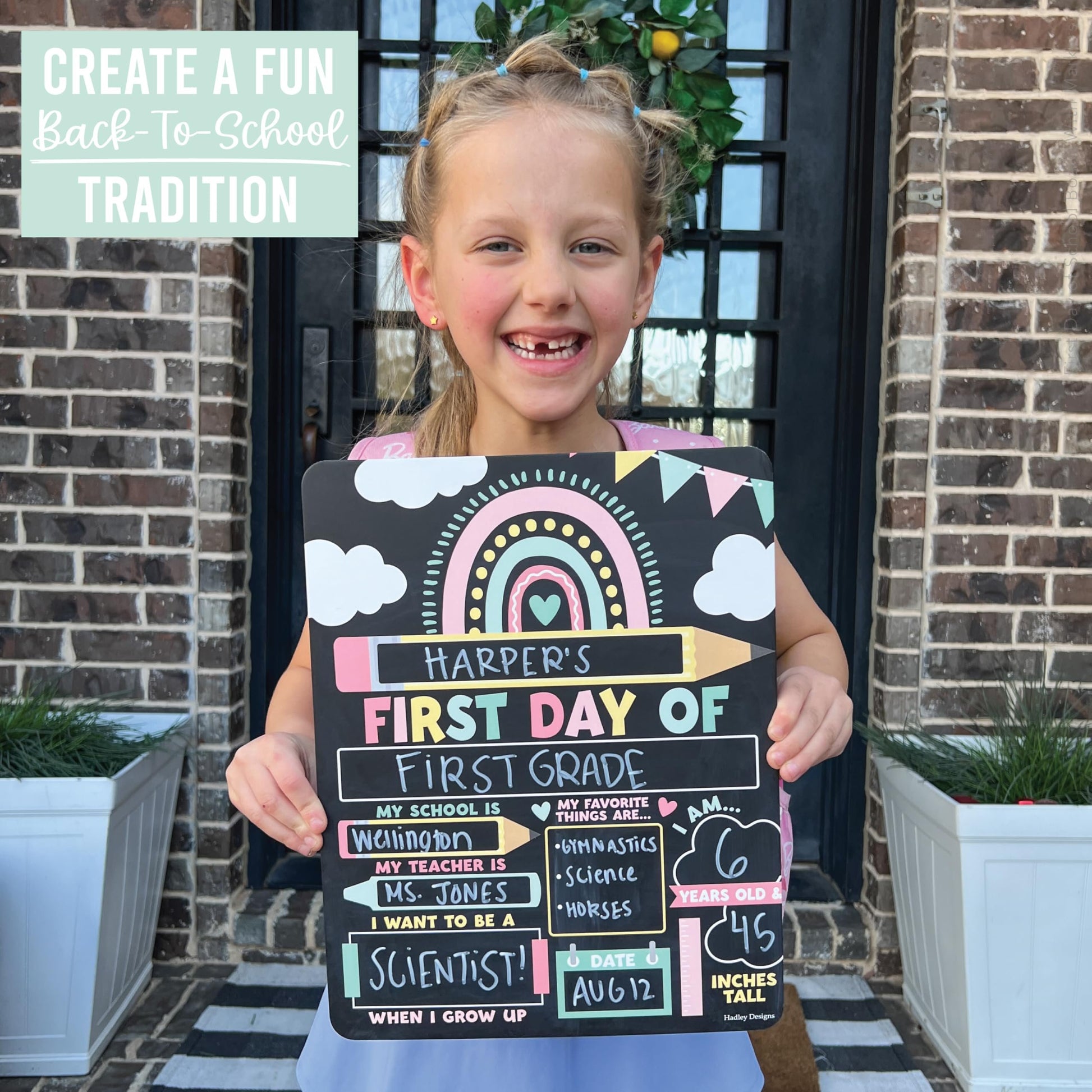 - If You’re Looking For A Fun Back To School Tradition, Then you need this 1st day of school board, our first and last day of school sign reusable board / 1st day of school signs are designed with love and attention to detail in the USA