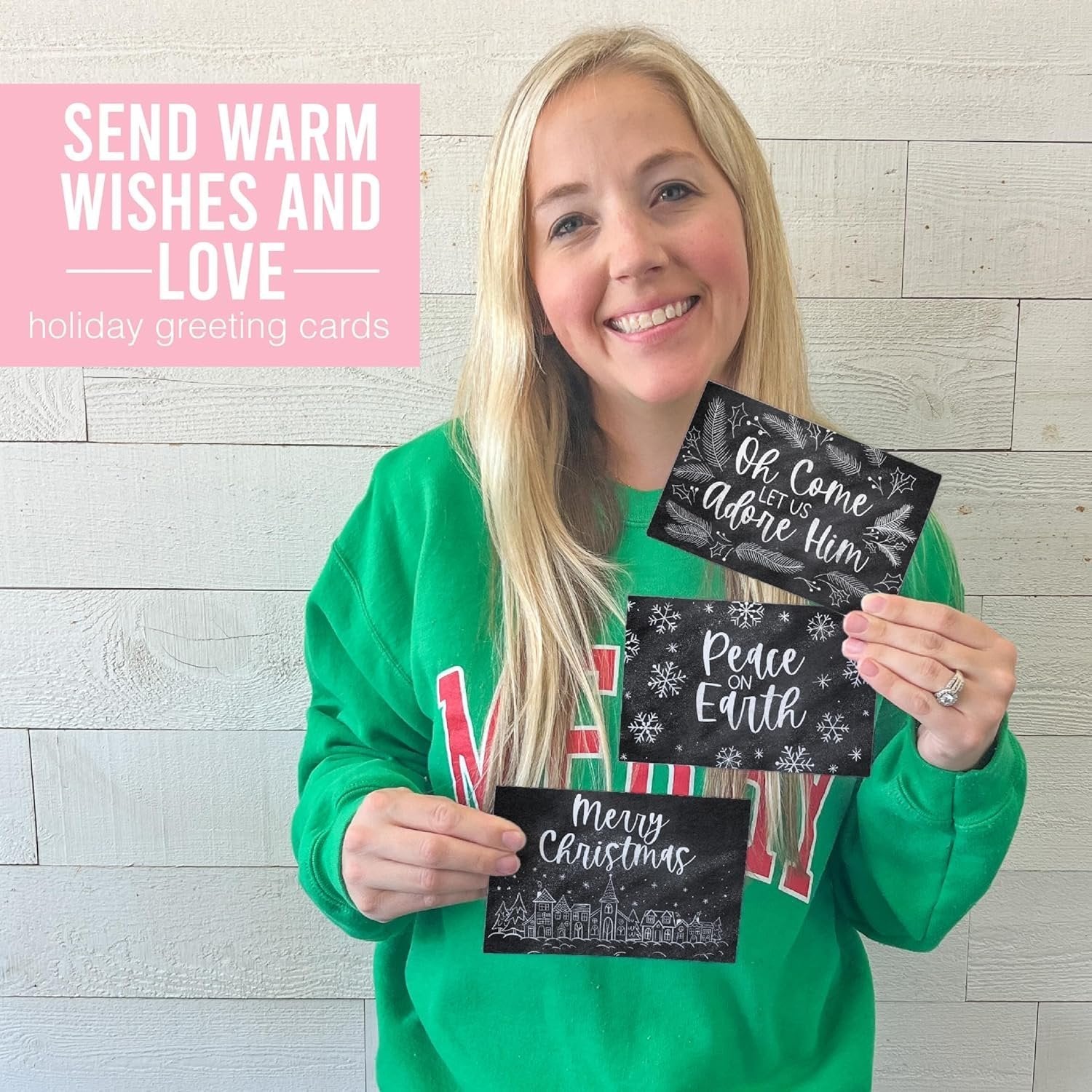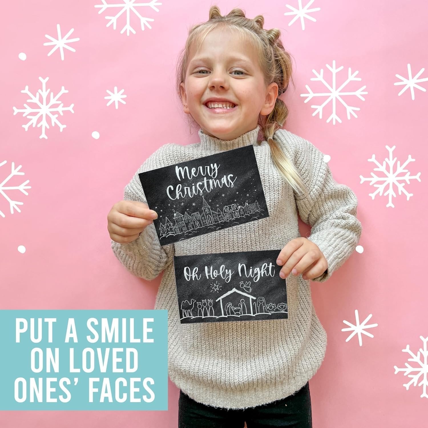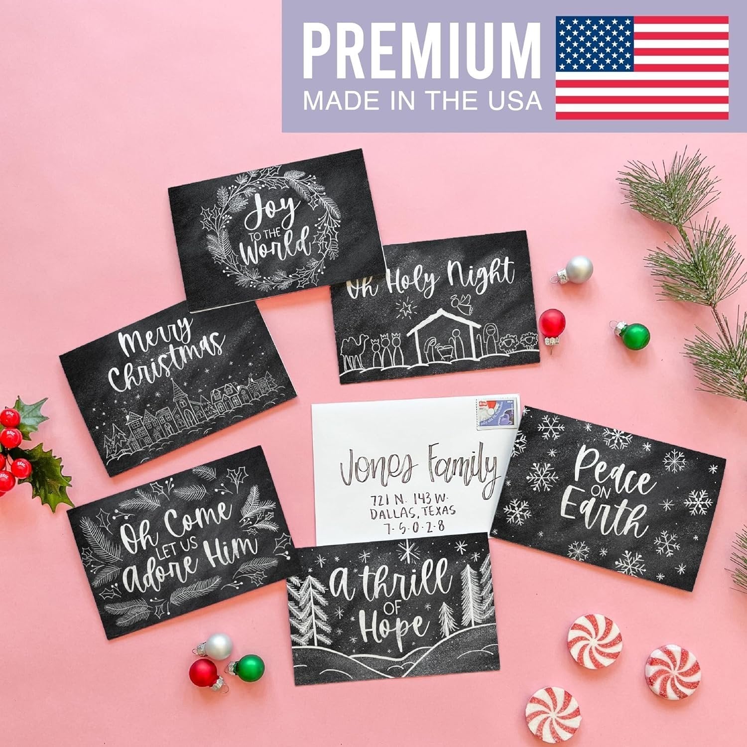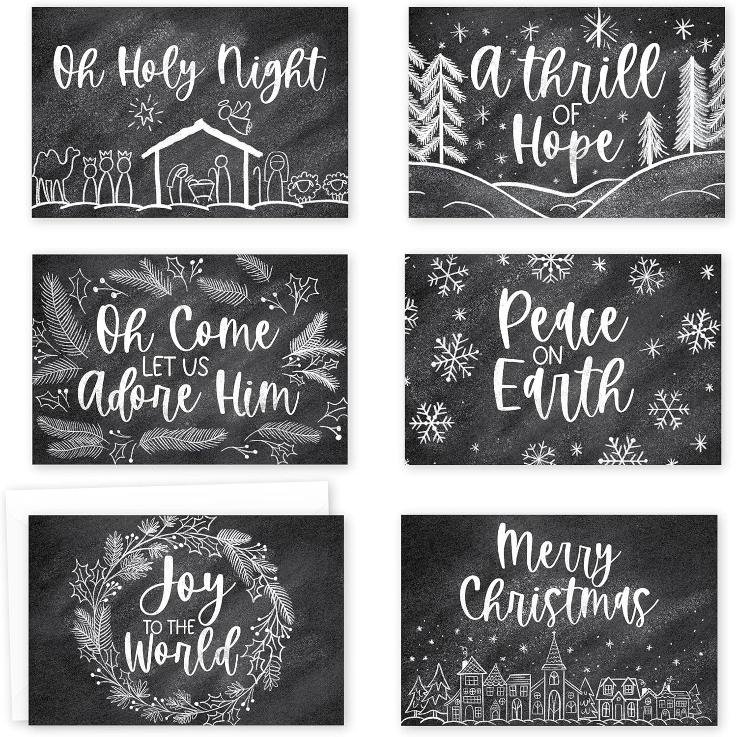 Looking to spread blessings to loved ones this Christmas? Then share your warm wishes with these blank Christmas cards with envelopes! These Christmas greeting cards with envelopes are just what you need to make loved ones feel cherished and appreciated this holiday season. 4x6 Inch Holiday Cards—Contains 24 Christmas Cards! 6 Unique Christmas Card Designs Envelopes Included You'll receive 24 - 4x6 inch blank holiday cards—featuring 6 unique card designs. And the best part? These Christmas and holiday cards come with envelopes, so they're ready to ship right away! This Christmas cards pack also features large blank spaces, so you'll be able to create heartfelt personalized messages for your loved ones (great for making friends and family feel special). Express your deepest sentiments by using these as peace on earth christmas cards, a thrill of hope christmas cards, oh come let us adore him christmas cards / oh come let us adore him cards christmas cards boxed religious peace christmas cards, pretty christmas cards, boxes of christmas cards, doodles christmas card pack christmas card set, christmas village bulk christmas cards with envelopes, christmas card bulk, boxed christmas cards 2023 xmas cards 2023, chirstmas card / christmas card packs, modern farmhouse best boxed christmas cards, blank christmas cards and envelopes, pack of christmas cards, christmas cards in bulk, tarjetas de navidad, chrismas cards, black and white chalkboard beautiful christmas cards, elegant after christmas cards, rustic christmas cards for family, simple vintage oh holy night a thrill of hope cards, joy to the world o holy night card. Our family-owned business wants to help you deepen your most cherished relationships this Christmas season. If you have questions about our assorted Christmas cards boxed with envelopes, christmas cards variety pack, or belated christmas cards, please don't hesitate to reach out. We're always here to help.