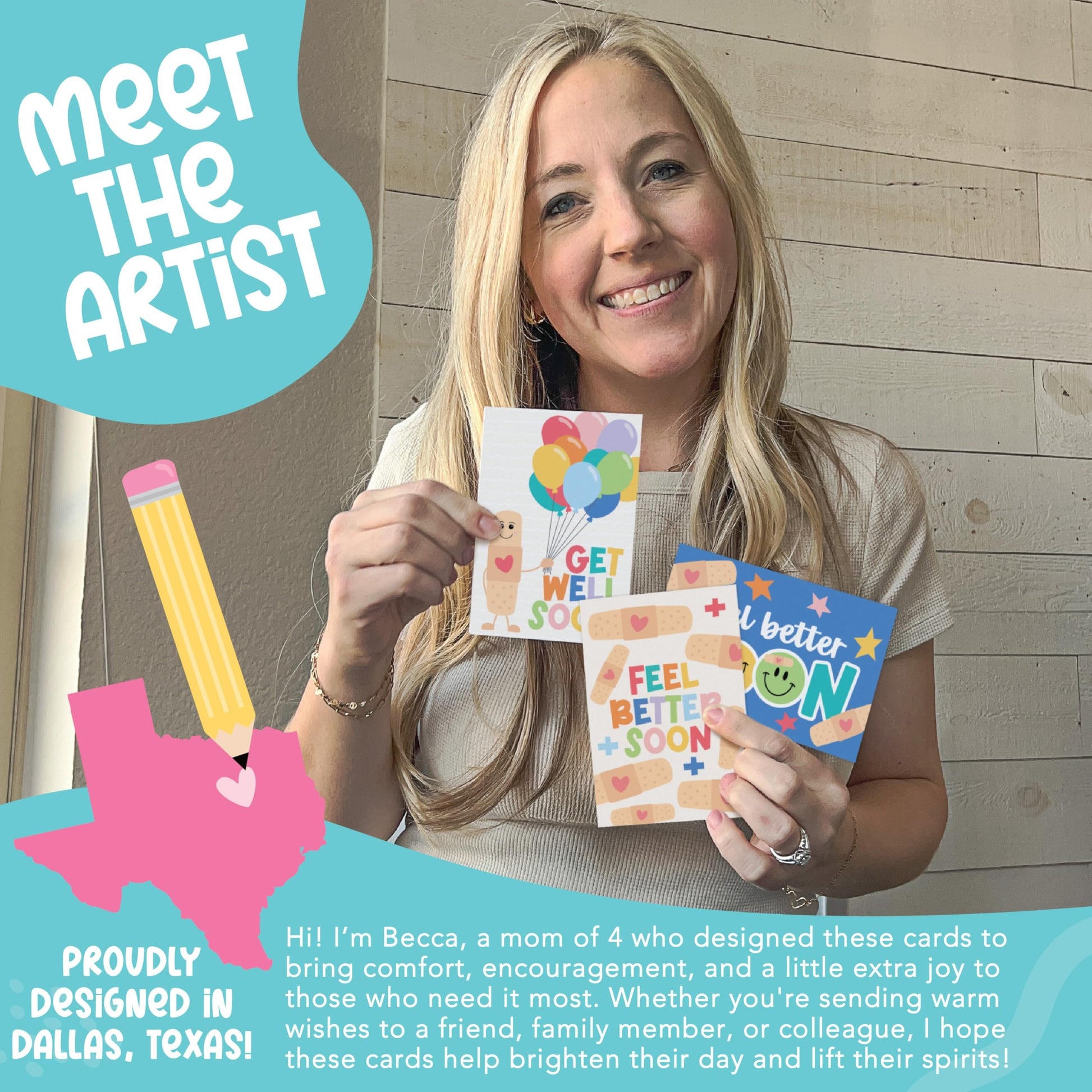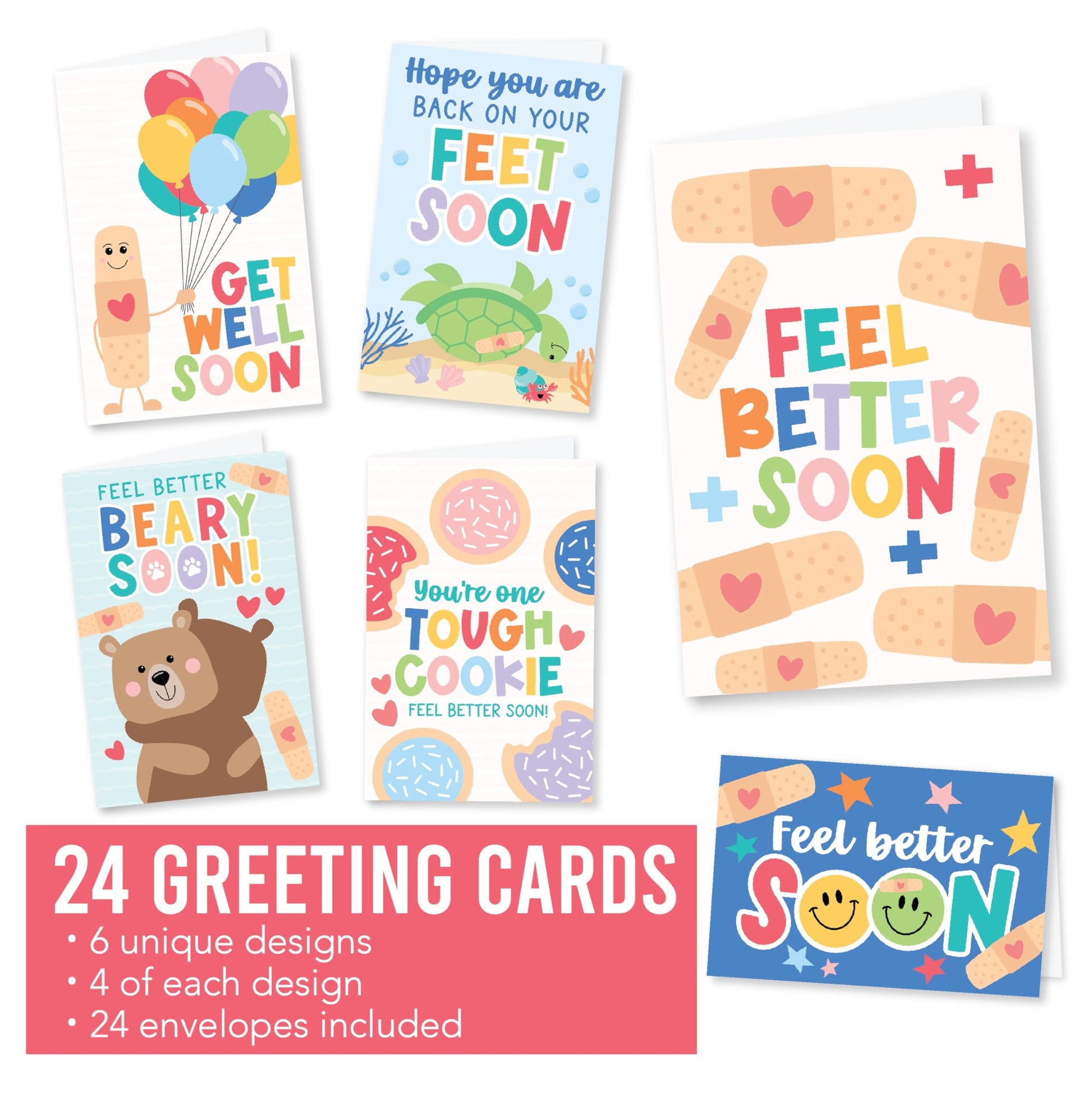 Folded Get Well Soon Cards | Set of 24 | Cards & Party | Envelopes Included