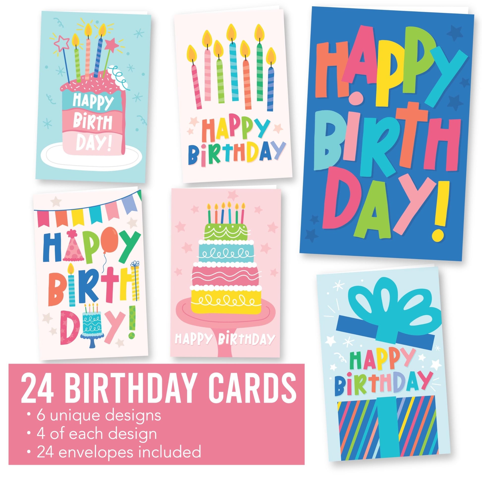 Happy Birthday Cards | Set of 24 | Envelopes Included | Cards & Party