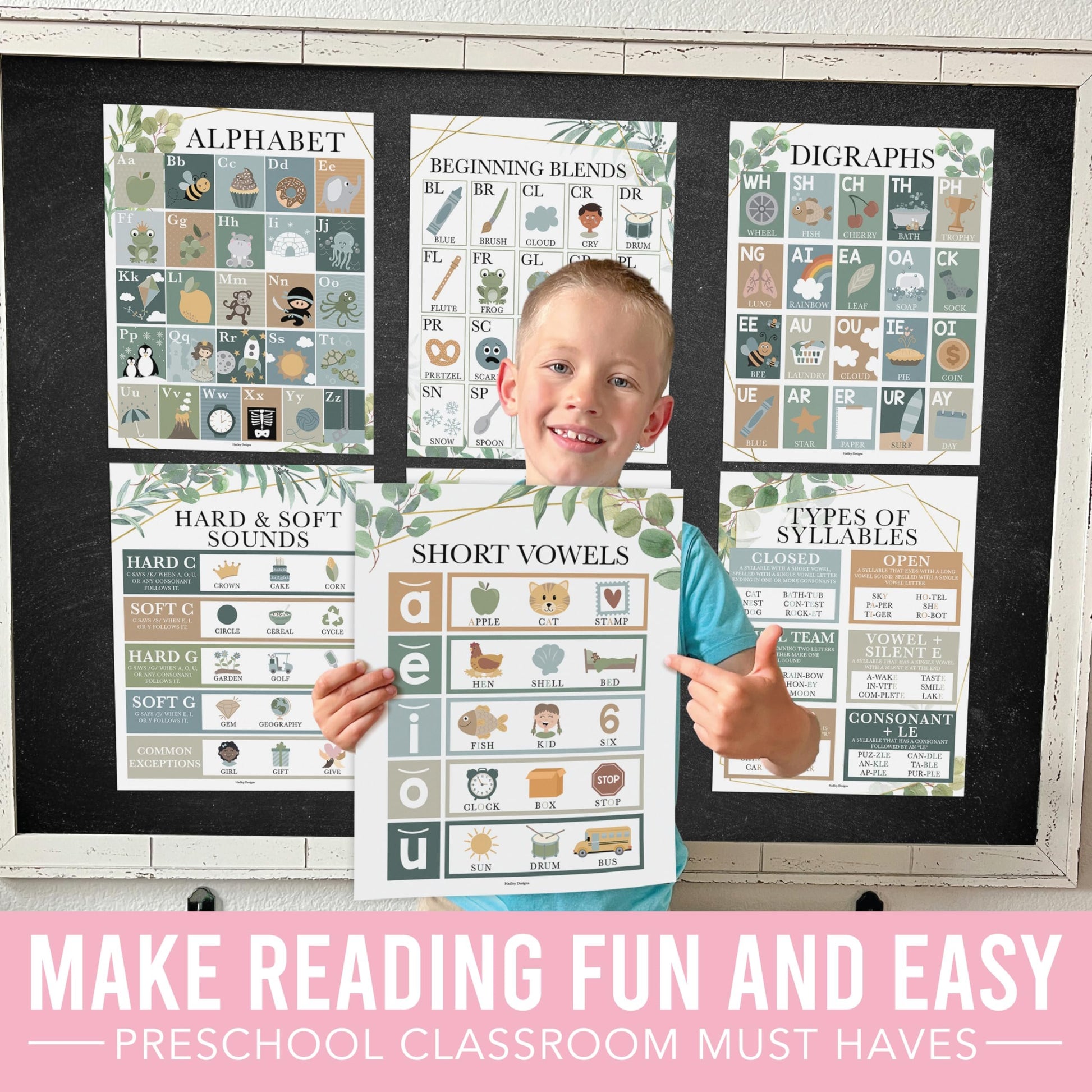 Bring your classroom to life by using these as phonics classroom decor theme sets, long and short vowel sounds charts for classroom, sound wall phonics posters 1st grade, beginning blends poster kindergarten with pictures, dipthongs and digraphs poster, types of syllables poster, phonetic alphabet chart for classroom wall, preschool classroom must haves for teachers, teacher supplies for classroom elementary, teacher must haves for classroom elementary, classroom supplies for teachers elementary, bulletin board decorations for classroom essentials, consonant blends poster, consonant sound wall poster, digraph poster spelling, digraph posters 2nd grade, digraph posters for classroom, ending blends poster, syllable posters, vowel charts for wall, botanical boho vowel digraphs poster, eucalyptus vowel posters for classroom, watercolor plant vowel sounds poster, vowel team posters for classroom, vowel teams chart, phonics chart for preschool to grade 1 kids, sound wall classroom phonics bulletin board, alphabet posters for classroom wall, kids alphabet poster, floral garden kids educational posters.
