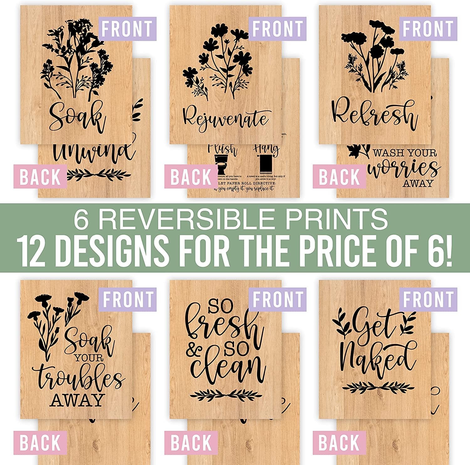 Relaxing Bathroom Wall Art | Set of 6 Reversible Prints | Home Decor
