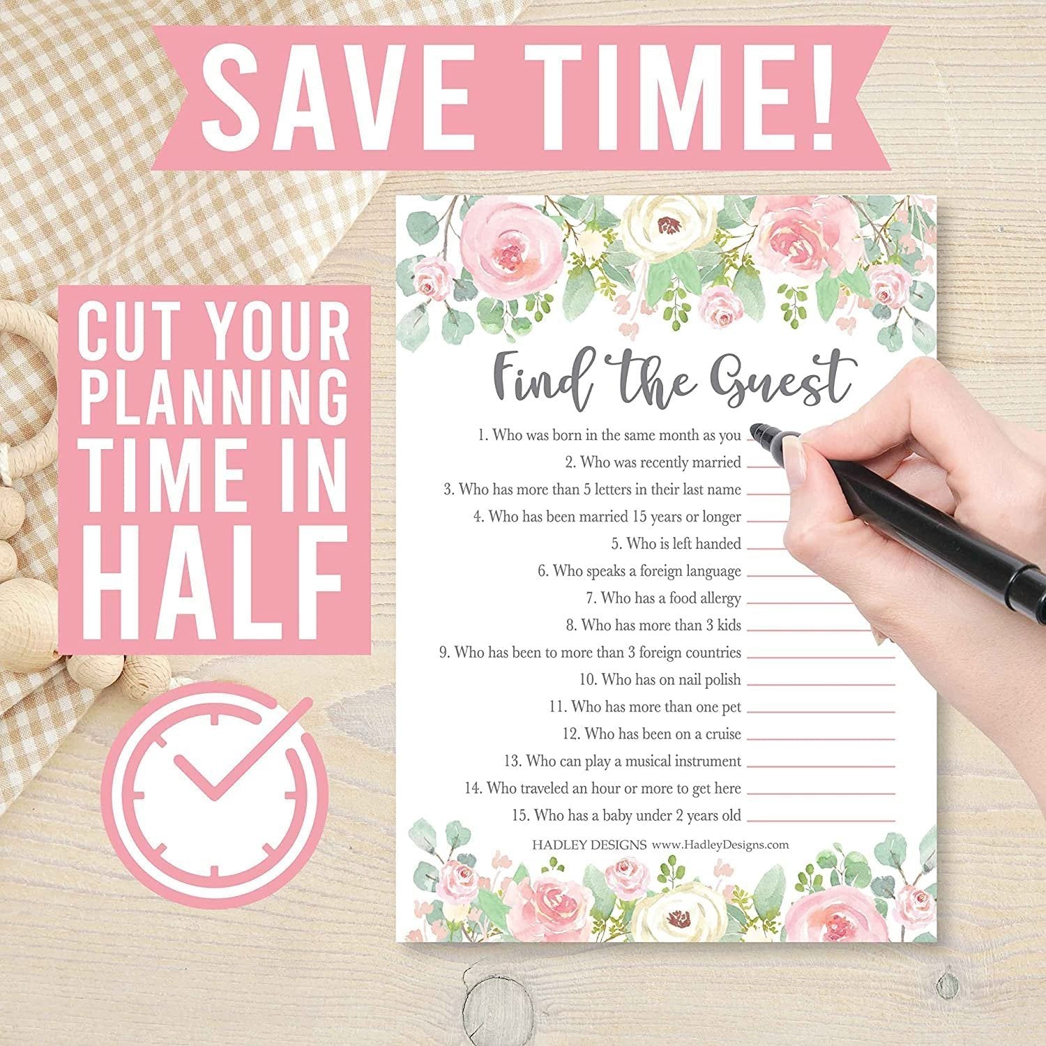 - If You Want Stress Free Baby Shower Ideas; These find the guest baby shower games are for you; While other baby shower game cards are made overseas with flimsy paper, our pink floral girl baby shower games are made in the USA on premium card stock