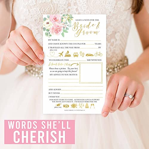 - Memorable Guest Book Alternative; You'll receive 25 5x8 wedding cards for couple printed on hard cardstock with matte finish; These blush and green wedding advice and well wishes cards are fun wedding shower games or wedding games