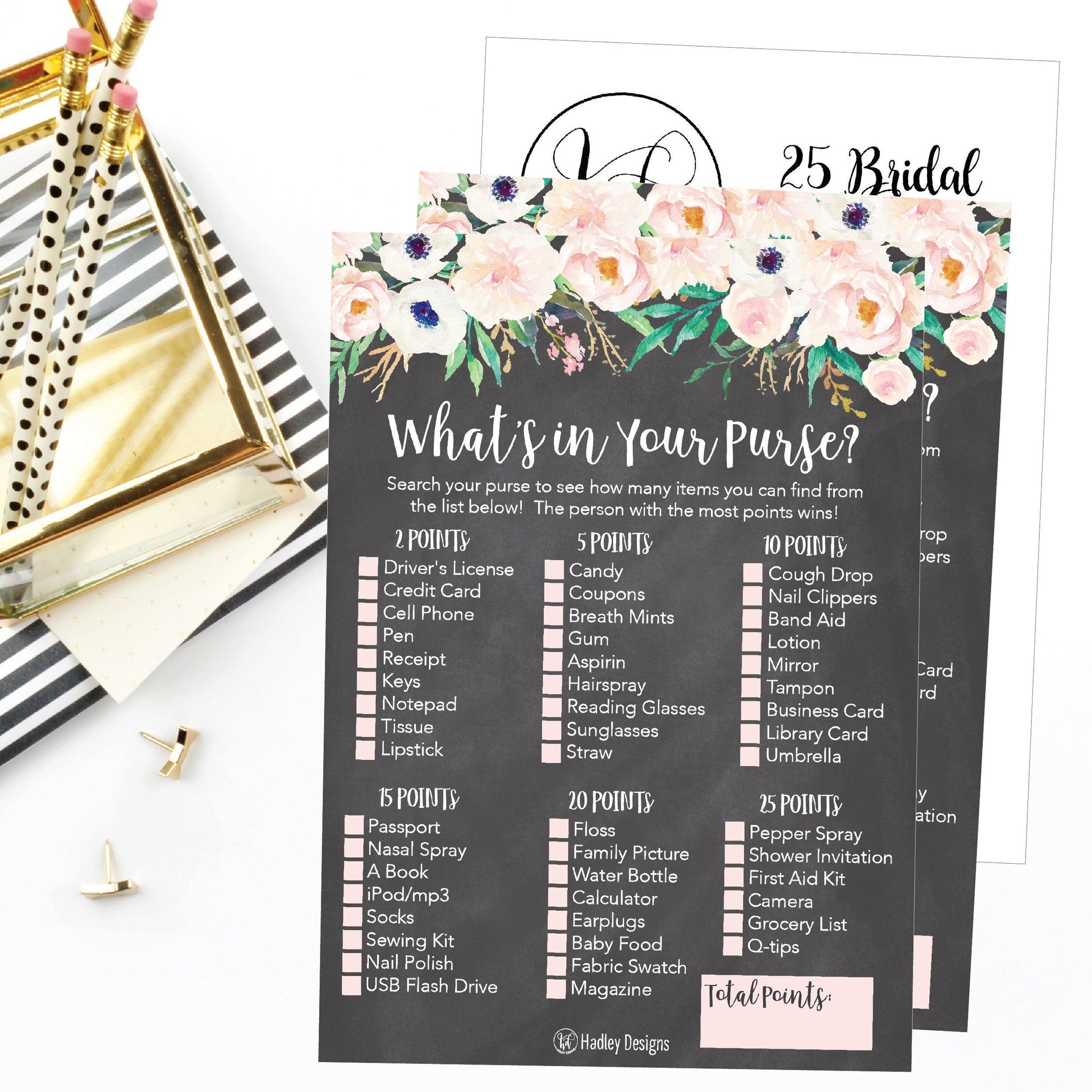 - Impress your guests & help them have fun; 25 game boards your guests are going to have so much fun searching through their purses hoping they have the right items in their purse! Everyone will have a good laugh!